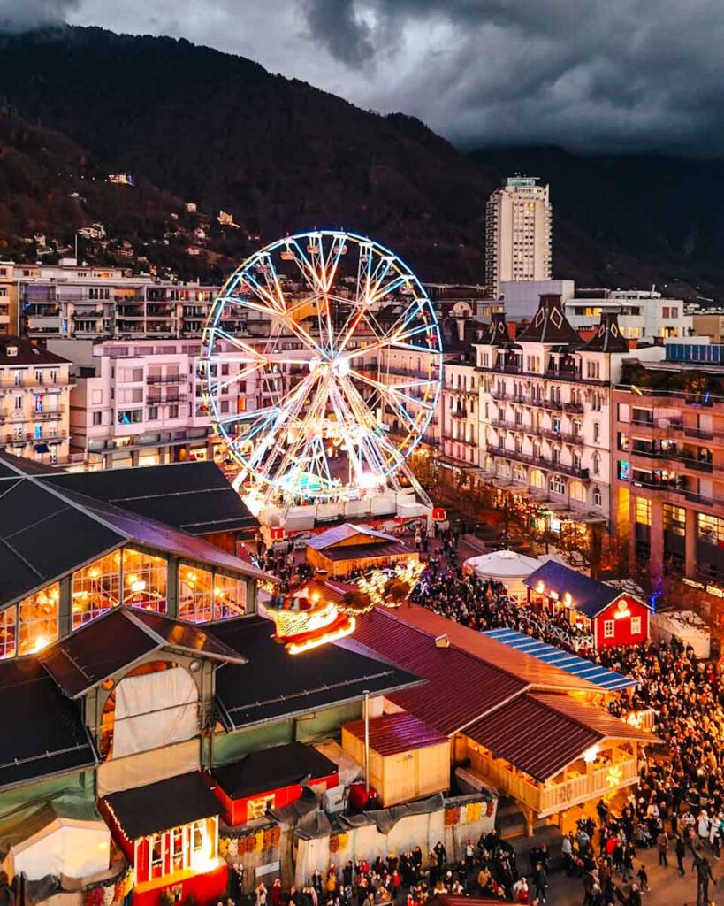 Passe a tarde no Marché de Noël de Montreux: >170 chalés à beira-lago, brinquedos, artesanato e comida tradicional. Assista ao Flying Santa (a cena do Pai Natal "voador" sobre o lago) — é um dos espetáculos mais instagramáveis.
